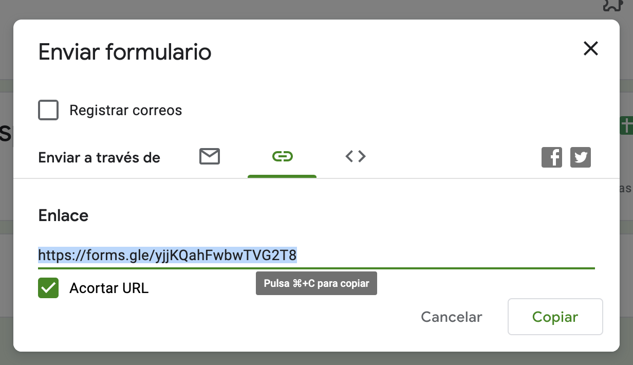 3. Una vez listo, compartimos el formulario a través de un enlace.