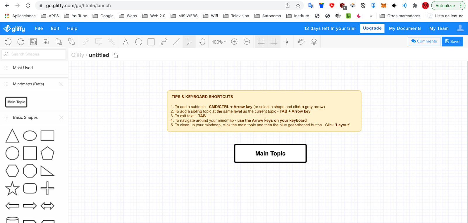 Con esta herramienta podemos crear mapas mentales, sitemaps… El uso es muy sencillo y parecido al de Draw. Lo malo de esta herramienta es que es de pago, pero nos permite crear una cuenta de prueba para 2 semanas.