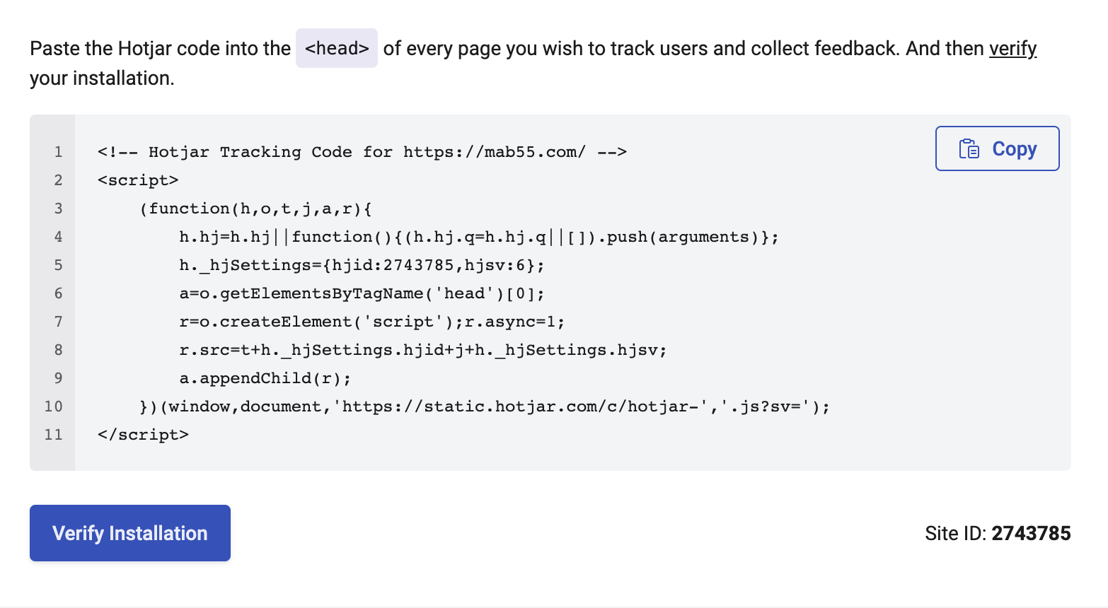 6. Copiamos el código JS dentro del head de tu web y listo. La app ya empezará a coger los datos necesarios para generar el mapa de calor.