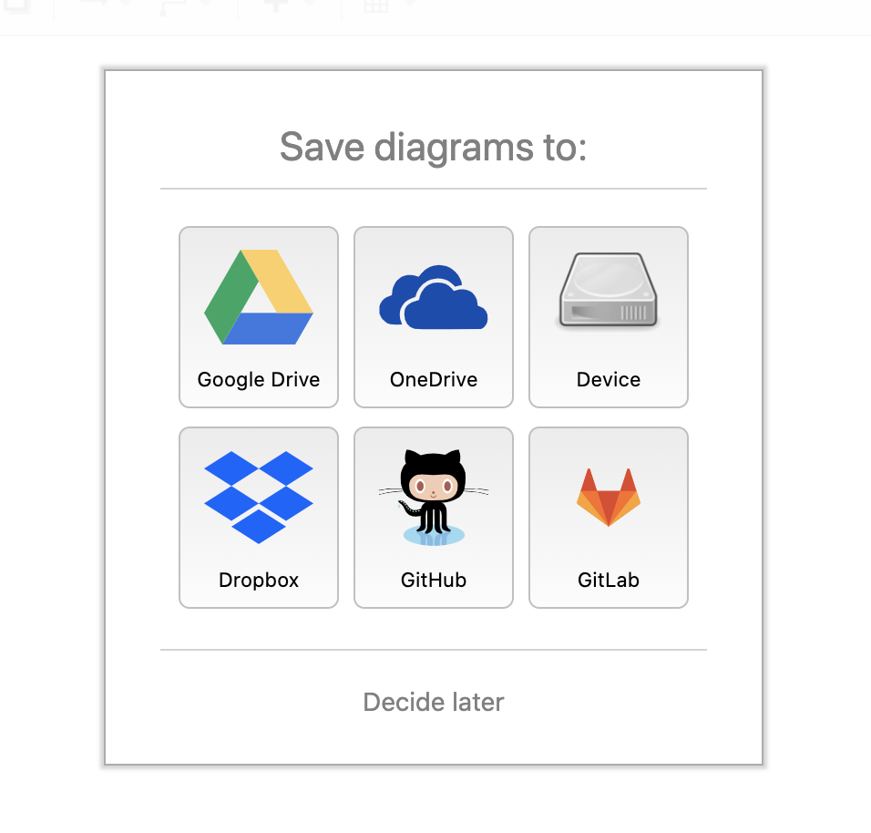 1. Para crear un prototipo, debemos de entrar con nuestro navegador a la web de Draw. Una vez dentro, podemos ver que nos pregunta dónde queremos que se guarde nuestro proyecto. En mi caso elegiré en el dispositivo (Device).