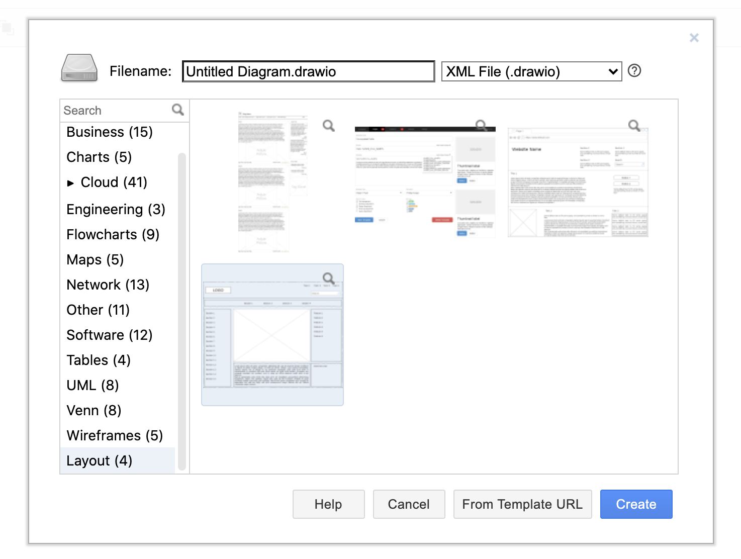 2. Seleccionamos el tipo de proyecto que queremos, en mi caso voy a coger una plantilla de tipo layout. Para continuar pulsamos en “Create”.
