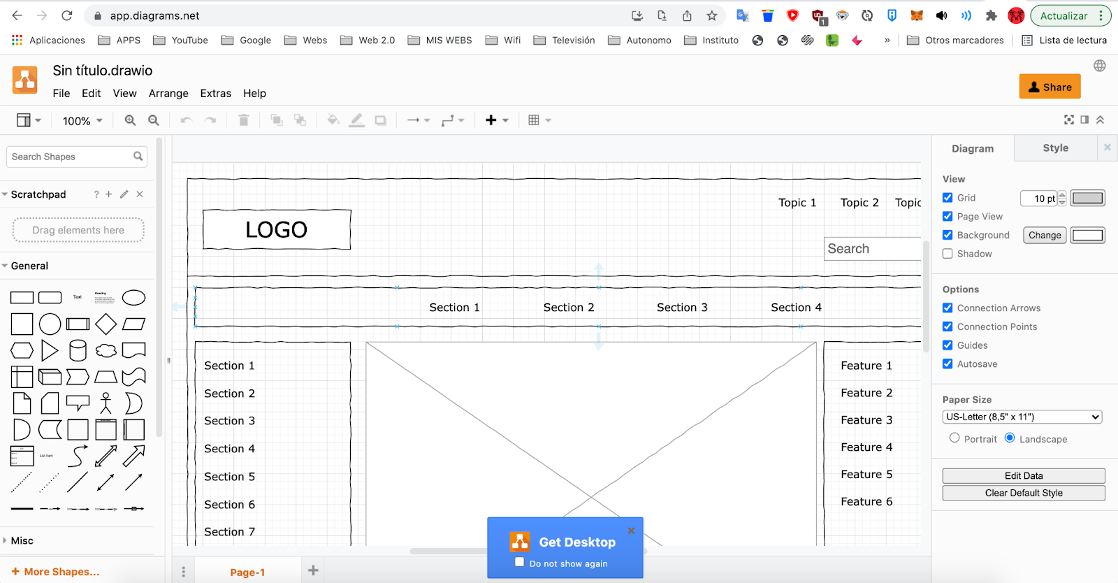 Esta herramienta nos permite crear un prototipo de forma muy sencilla y online. Aparte de ofrecernos prototipos, también existen otros tipos de diagramas (uml, entidad-relación…).